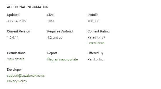 BuzzBreak adalah satu aplikasi yang menawarkan kepada pengguna ganjaran berupa sejumlah wang dalam transaksi USD. Apa yang perlu dilakukan untuk mendapatkan point bagi ditukar kepada usd adalah dengan membaca berita dan menonton video yang disediakan. Setiap 30 saat, pengguna akan mendapatkan 5 point dan ada bonus iaitu daily reward yang ganjarannya verjumlah lebih besar (150 – 800) point.